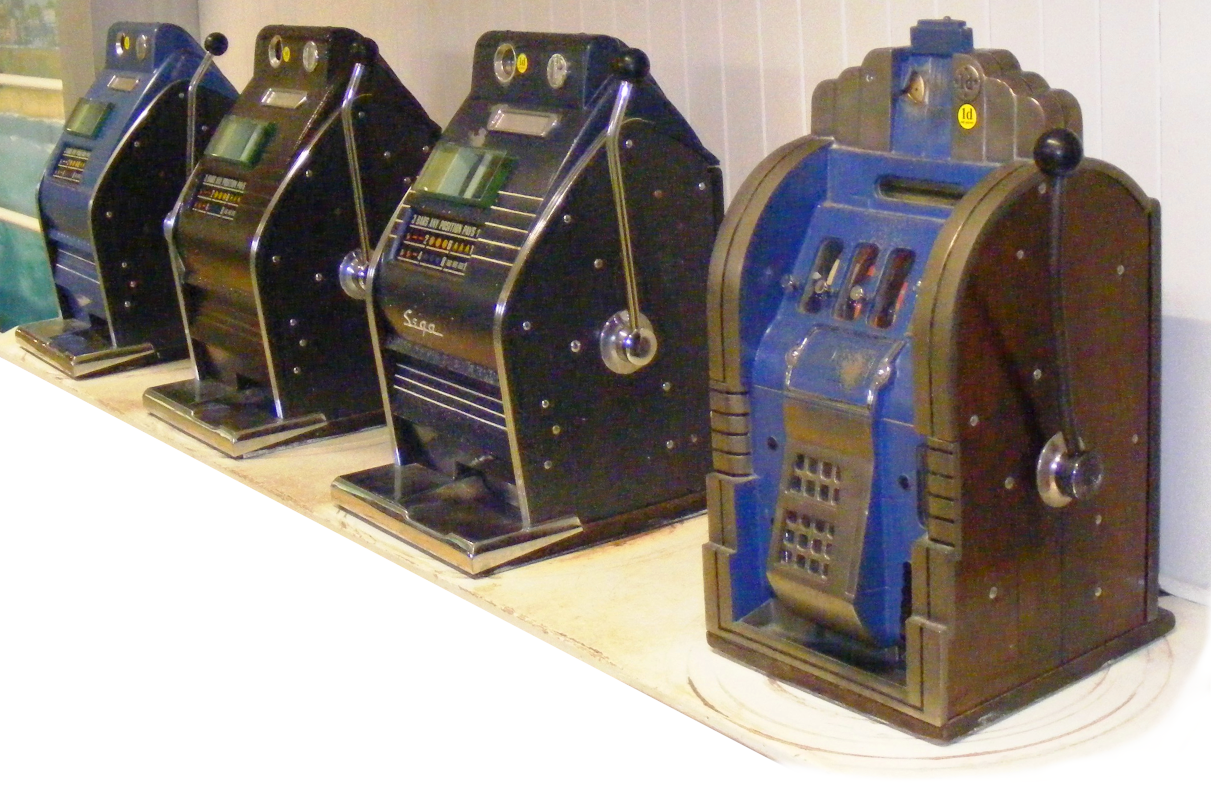 Fig. 77 A real-world four-armed bandit made of four one-armed bandits. Source: Wikipedia (public domain), edited by the author.#
