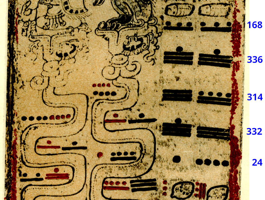 Fig. 18 Maya numerals on a page of a Maya book known as Dresden Codex. Source: Sylvanus Morley via Wikimedia Commons, modified by the author.#